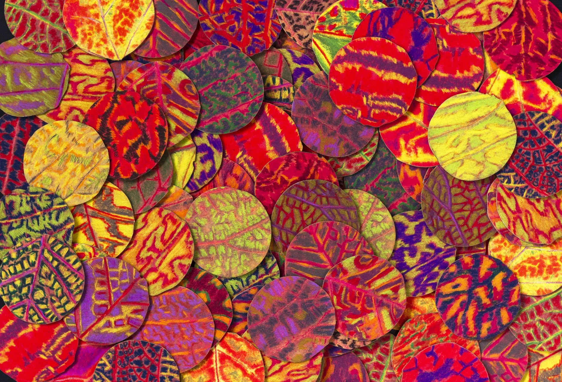 Hand tinted maple leaf circles Daphne Boyer, visual artist